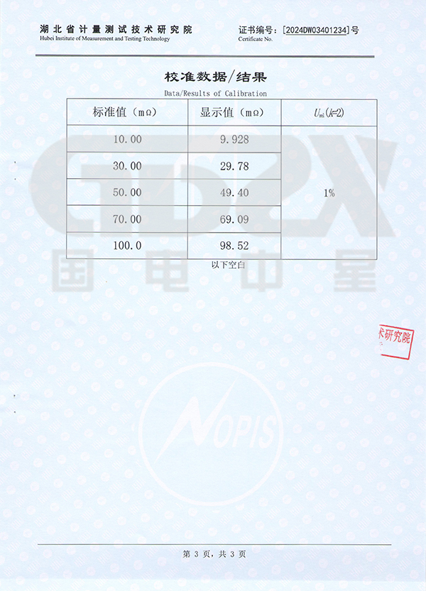 2. 分辨率:0.001mΩ